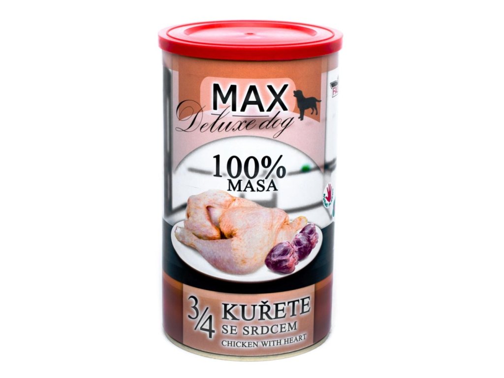 MAX Deluxe Dog 3/4 kuřete se srdcem, konzerva 1200 g