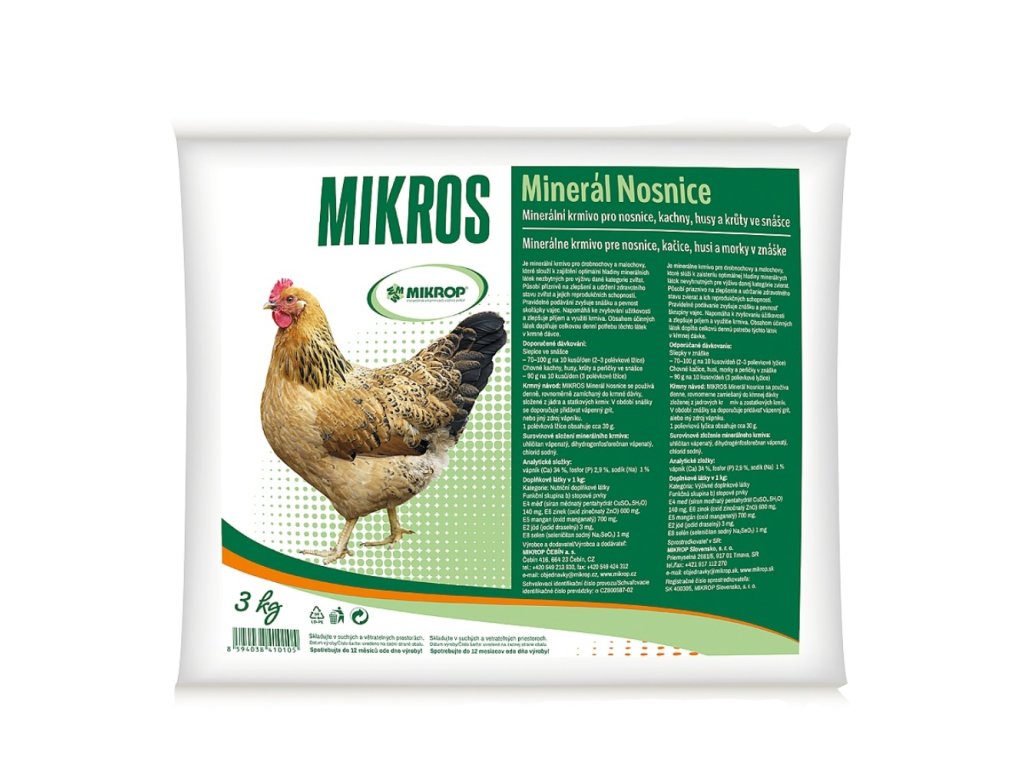 Mikros Minerál Nosnice minerální doplňkové krmivo pro slepice a drůbež ve snášce.