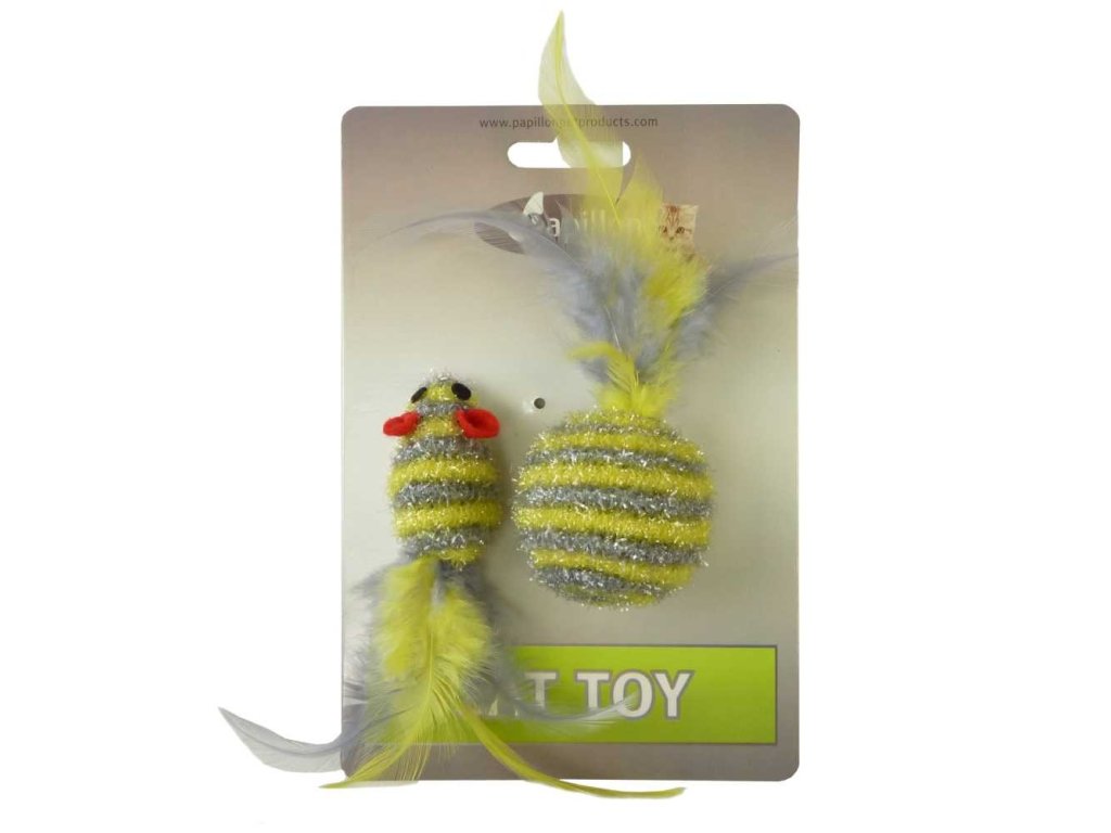 Myš a míček s peřím zlato-stříbrná pruhy třpyt