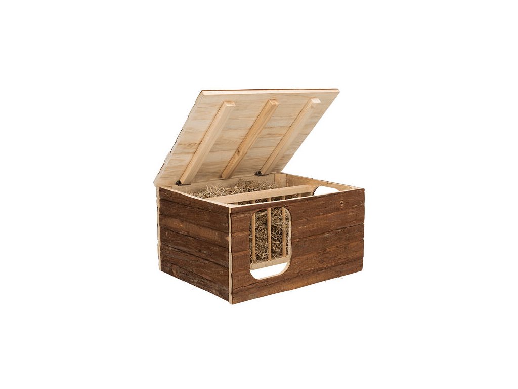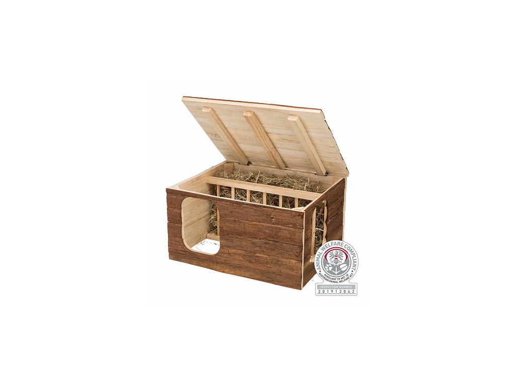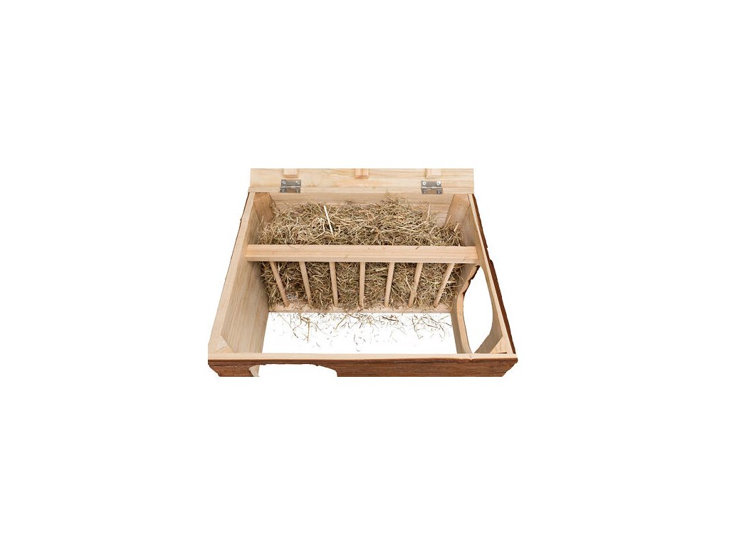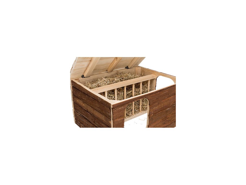 - střešní a vyvýšené výstupní otvory zabraňují, aby se seno dostalo mimo domeček