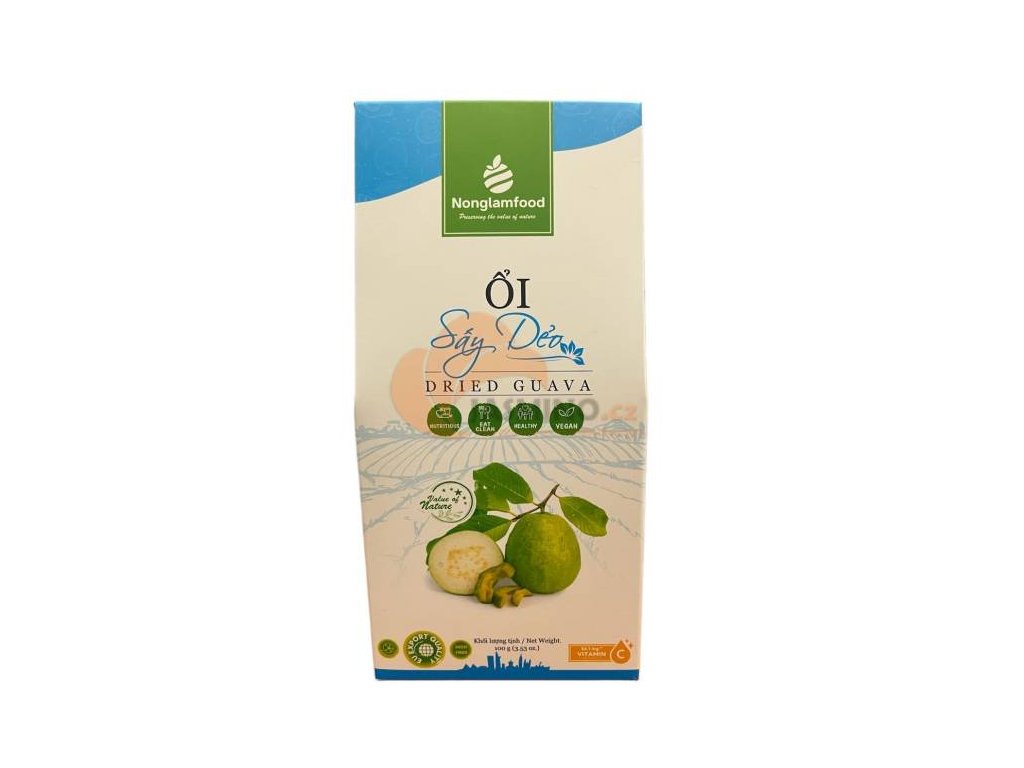 Složení: Guava dužina 92,9%, cukr, regulátor kyselosti (E330), antioxidant E223. Nutriční hodnoty na 100g: Energie 1389kJ/332kcal / Tuk 0,2g z toho nasycené mastné kyseliny 0,2g / Sacharidy 80,9g z toho cukr 56,3g / Protein 1,5g / Sůl 0,2g. Skladování: Skladujte na chladném a suchém místě, mimo dosah světla a tepla. Země původu: Vietnam.Doplňkové parametry