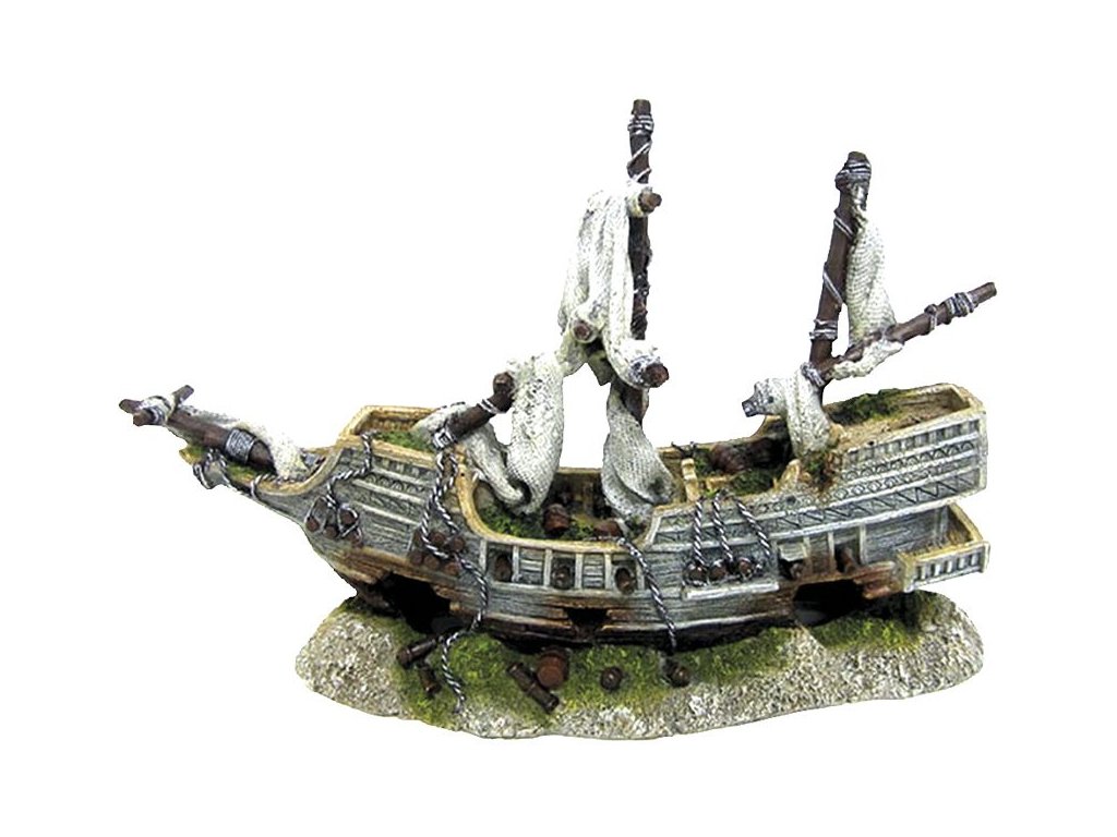 Dekorace do akvária značky Nobby. Vrak lodi Galeona. Velikost 35,8 x 13 x 22,5 cm. Vyrobeno z polyresinu (syntetické pryskyřice) Velmi detailní provedení. Netoxické - neutrální na biologické rovnováhy. Vhodné pro sladkou nebo slanou vodu. UPOZORNĚNÍ: Před prvním použitím v akváriu opláchněte vlažnou vodou (bez čisticích prostředků!). Mírné barevné změny jsou možné po delším používání.Doplňkové parametry
