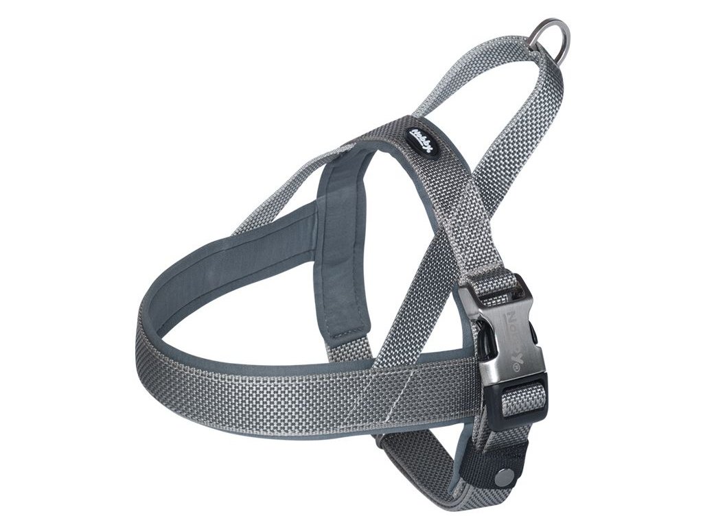 Moderní norský postroj Nobby pro psy vyrobený z nylonu a neoprénu. Vyznačuje pohodlným a snadným oblékáním. Je vhodný jak na každodenní procházky, tak pro tréninky nejrůznějších sportů (agility, flyball - zde poslouží především pohodlné očko na zádech pro snadnou manipulaci se psem). Vrchní vrstva z nylonu vzhledově vytváří elegantní dojem. Přezka na zapínání je vyrobená z leštěného kovu a plastu. Elegantní a zároveň funkční. Velikost: délka hrudní části 54 cm šířka popruhů 40/45 mm plynule nastavitelný obvod hrudníku 68-85 cm barva šedá Neoprenová podšívka je šetrná k srsti psa, ale také rychle schne, když se pes v létě rád koupe. Pohodlné polstrování z neoprénu v oblasti hrudníku, krku a ramen. Optimální pohodlí při nošení a také zajištění, že psa při běhu postroj nedře a nevytrhává srst. Snadné a rychlé nasazování postroje. Rychlé zapnutí vodítka pomocí horního poutka. Norský postroj byl vyvinut speciálně pro aktivní psy a chovatele psů, a proto je ideální pro jízdu na kole nebo jogging. Postroj zaručuje Vašemu psovi pohodlné nošení, i když mírně táhne. Všité držadlo na obojku umožňuje majiteli psa, aby mohl rychle reagovat v nastalé situaci a případně nechal psa jít u nohy. Postroj Nobby zaručuje vysokou kvalitu a funkčnost v kombinaci s atraktivním designem.Doplňkové parametry