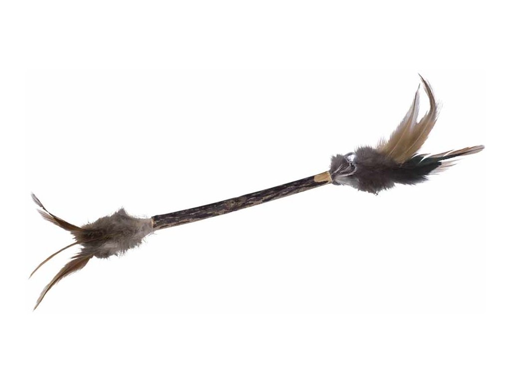 Hračka pro kočky. Tyčinka Matatabi jejíž konce jsou doplněny peřím. Kočky tyčinky milují, mazlí se s nimi, olizují je a také koušou a tím zlepšují dentální hygienu. Rostlina je svými účinky podobná šantě kočičí nebo kozlíku, ale má odlišnou vůni. Matatabi - Aktinidie stříbrná - je rostlina, kterou kočky zbožňují, účinky má podobné šantě nebo kozlíku.Doplňkové parametry