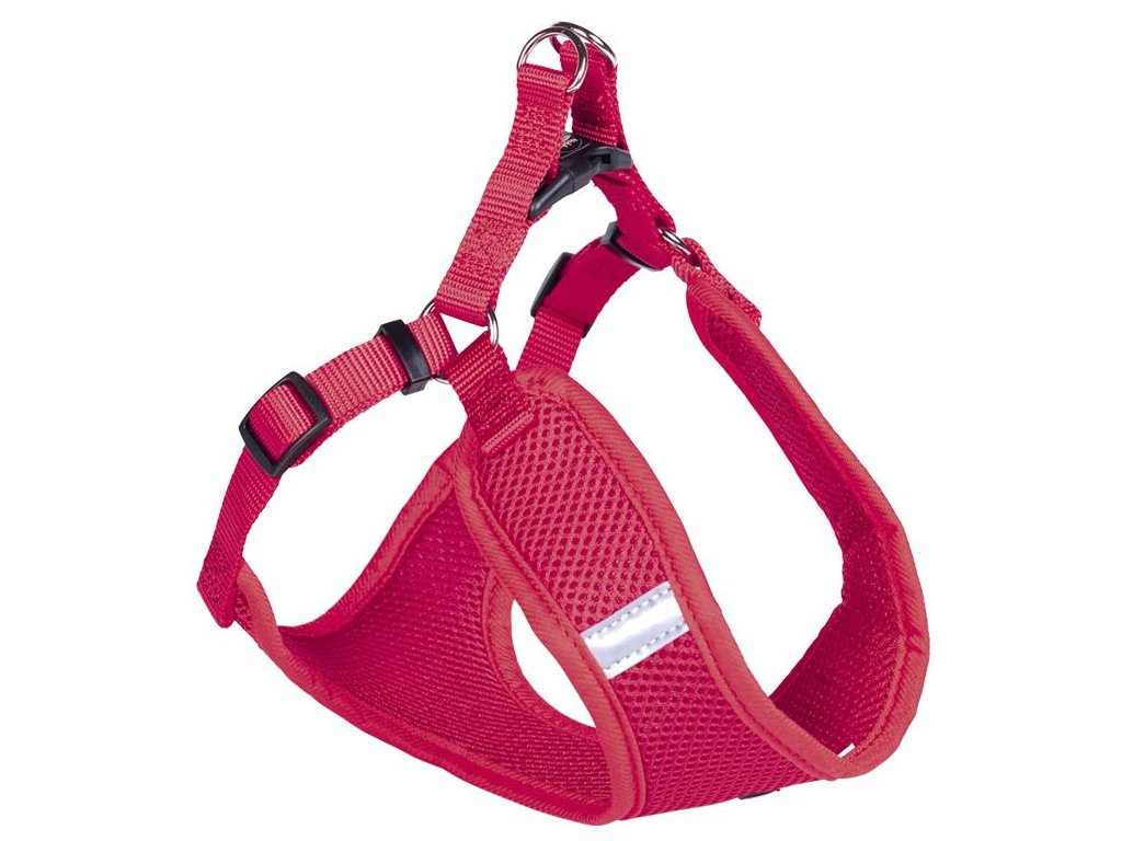 Oblíbený hrudní postroj Nobby pro psy. Je vyrobený ze síťoviny z prodyšného materiálu a je vybaven vysoce viditelnými reflexními pásky pro větší bezpečnost. Velkou výhodou je, že v horkých letních dnech může být namočeno do vody a poté ochlazuje. Velmi pohodlný střih a provedení, netrhá srst, netlačí a nedře pejsky, jsou skvělou variantou pro pejsky kteří táhnou, aby nebyla zatěžována krční páteř. Díky speciálnímu tvaru se snadno a rychle nasazuje. Pro optomální přizpůsobení má postroj nastavitelné popruhy. Barva červená. Obvod hrudníku 48-56cm.Doplňkové parametry