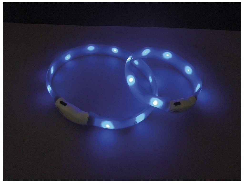 Široký svítící obojek Nobby potažený silikonem. Je vhodný především pro psy s delší nebo středně hustou srstí, ve které běžné obojky zanikají a vydávané světlo pak není dostatečně intenzivní. Obojek může blikat a nebo nepřetržitě svítit. Snadné USB dobíjení bez výměny baterií. Viditelná vzdálenost až 500 m. Obojek je odolný proti vlhkému prostředí ( mlhy, ranní rosa, déšť). Velikost: délka 40 cm, šíře 25 mm. (obojek lze zastřihnutím zkrátit na libovolný obvod krku) Výdrž: obojek svítí 3 hodiny a bliká až 4 hodiny Upozornění: Kroužek nepoužívejte k zachycení vodítka. Při zašpinění otřete hadříkem.Doplňkové parametry