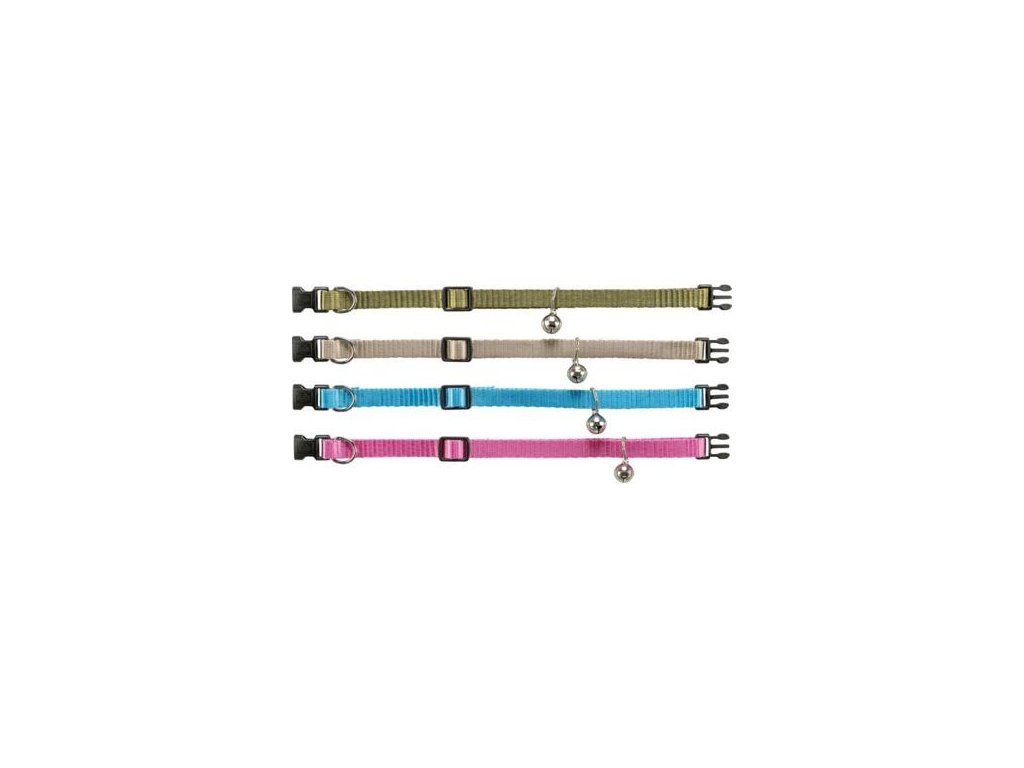 Nylonový nastavitelný obojek pro kočku, s rolničkou, khaki/béž/tyrkys/růž