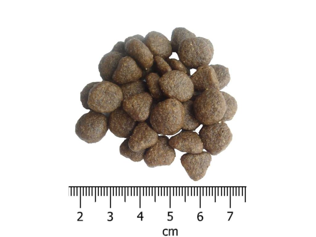 Analitické složky: Hrubý protein 31 %, hrubý olej a tuky 17 %, mastné kyseliny omega 6: 2,9 %, mastné kyseliny omega 3: 0,8 %, hrubá vláknina 3,5 %, celková dietní vláknina 6,5 %, hrubý popel 7,5 %, vápník 1,3 %, fosfor 1,1 %.