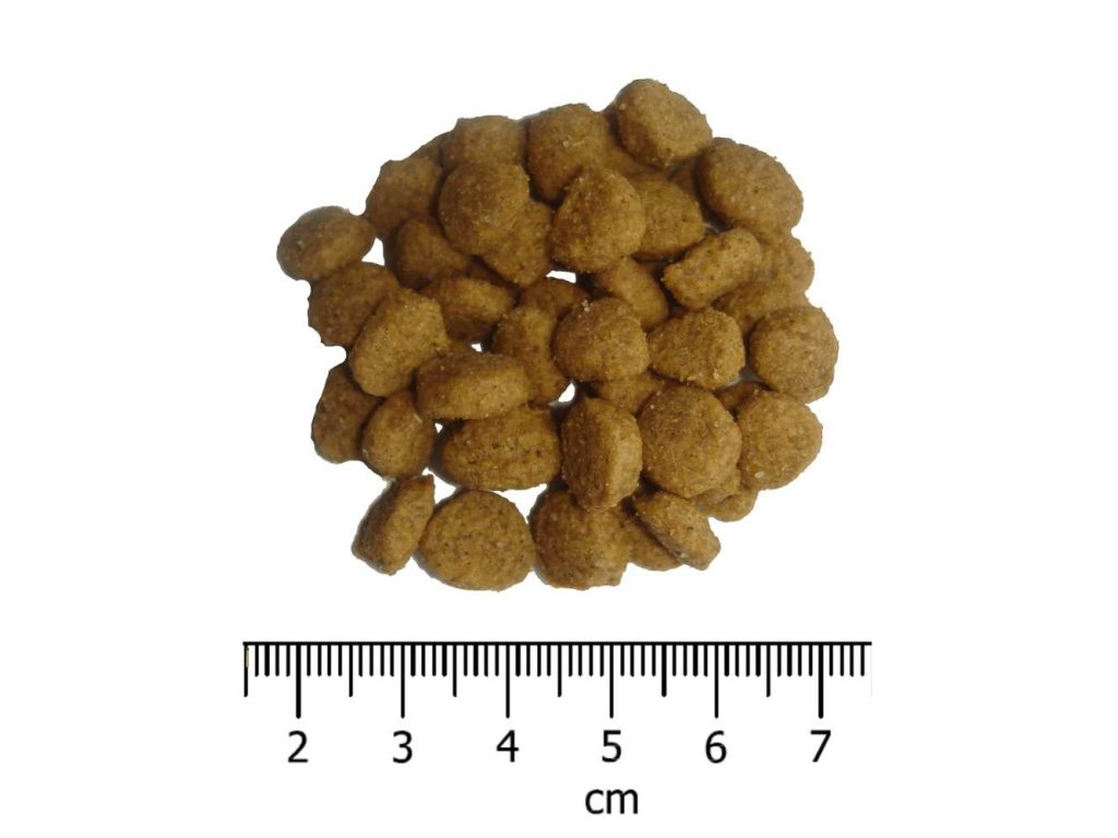 Analytické složky: Hrubý protein 37 %, hrubý olej a tuky 11 %, omega-3 mastné kyseliny 0,20 %, omega-6 mastné kyseliny 2,00 %, hrubá vláknina 6,00 %, hrubý popel 8,00 %, vápník 2,20 %, fosfor 1,60 %. Metabolizovatelná energie 3546 kcal/kg.
