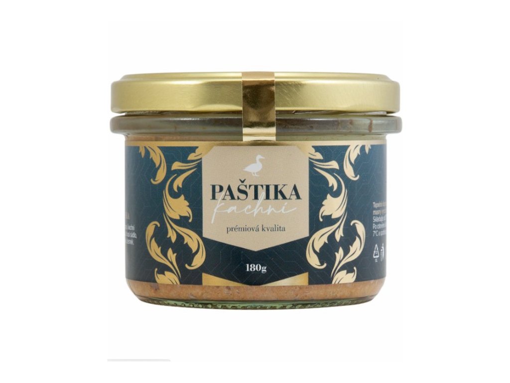 Prémiová kachní paštika z pečeného kachního masa a vepřového bůčku na jablkách bez konzervantů.Nutriční hodnoty