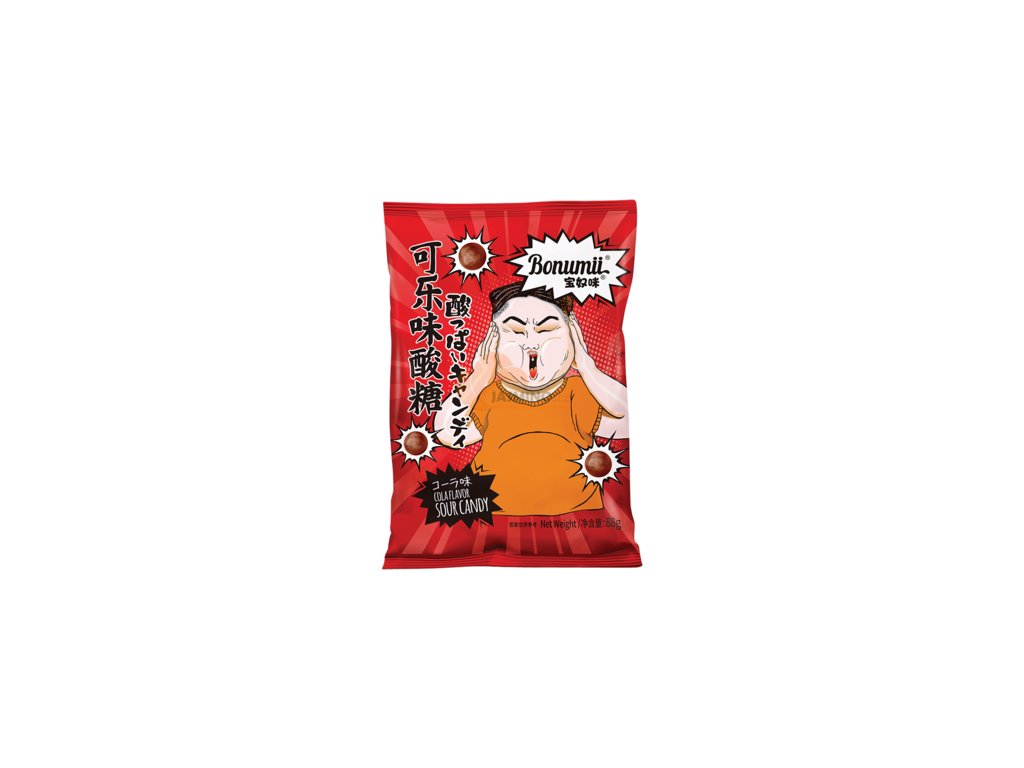 Twarde cukierki o musującym aromacie, o ekstrawaganckim smaku kwaśnej coli. Składniki: Syrop glukozowy, cukier, kwasy: kwas jabłkowy, kwas cytrynowy, cytryniany sodu; substancja spulchniająca: węglany sodu; aromat, substancja nabłyszczająca: wosk Carnauba; sól, substancja zagęszczająca: guma arabska; kolor: karmel amoniakalno-siarczynowy. Wartości odżywcze na 100g: Wartość energetyczna 1590kJ / 374kcal / Tłuszcz <0,5g w tym kwasy tłuszczowe nasycone <0,1g / Węglowodany 94g w tym cukry 93g / Białko <0,5g / Sól 0,45g. Przechowywanie: Przechowywać w suchym i chłodnym miejscu. Kraj pochodzenia: Chiny.Parametry dodatkowe