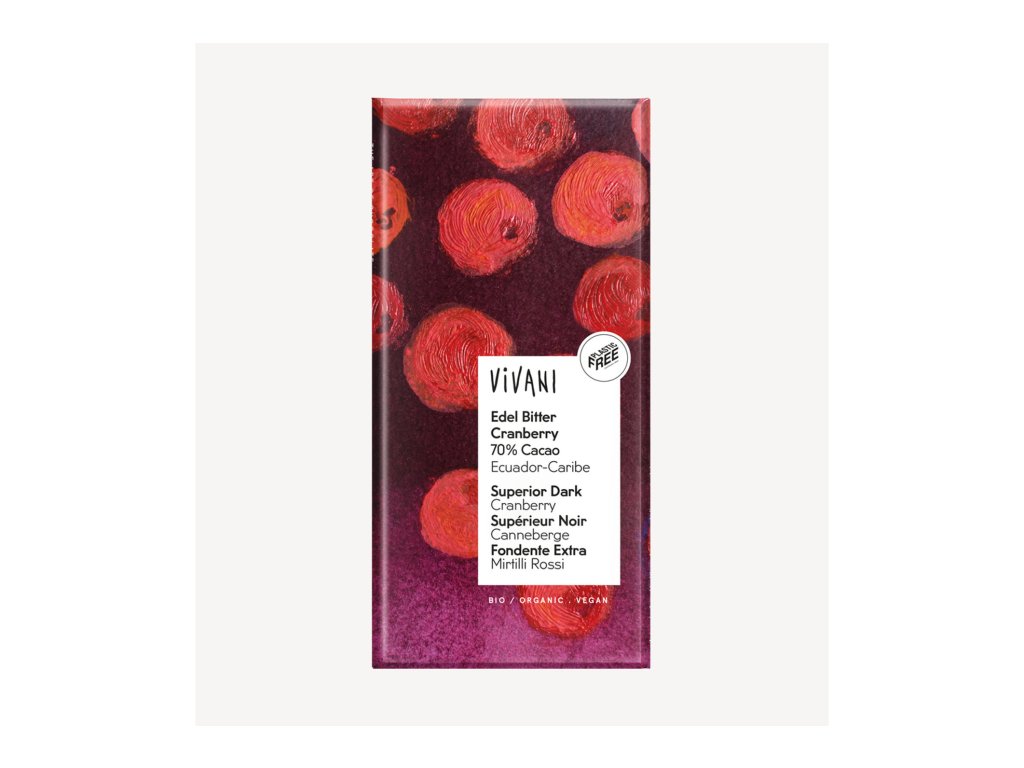 Czekolada gorzka z kawałkami ŻURAWINY organiczna wegańska - 100g Vivani