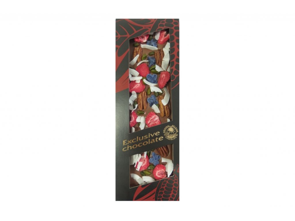 Czekolada mleczna z pekanami, pistacjami, truskawkami, bzem i kokosem - Severka 130g