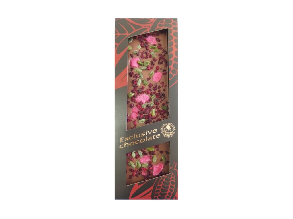 Czekolada mleczna z pistacjami, różami i wiśniami - Severka 115g