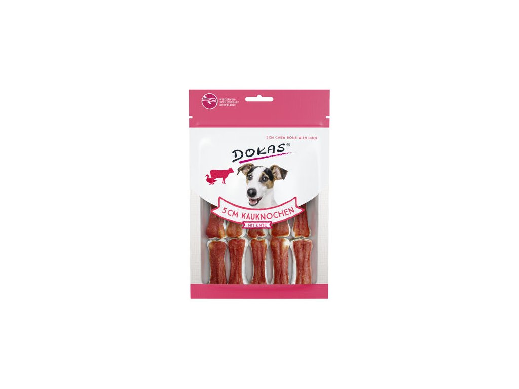 Skóra wołowa zawinięta w mięso kaczki. Popularny tradycyjny przysmak, który zapewni Twojemu psu rozrywkę i pomoże utrzymać zdrowe zęby i dziąsła. Wysoka jakość użytych składników gwarantuje wyjątkowy smak i aromat. Są bardzo popularne ze względu na swój naturalny skład. Przysmaki Dokas nie zawierają konserwantów, sztucznych barwników, aromatów ani gliceryny. Torebka posiada praktyczne zamknięcie, dzięki któremu przysmaki pozostają świeże i pachnące na dłużej. Opakowanie zawiera 12 kostek. Składniki: skóra wołowa 62%, mięso z kaczki 32%, produkty uboczne pochodzenia roślinnego, minerały Analiza: białko surowe 88,9%, oleje i tłuszcze surowe 3,6%, popiół surowy 2,8%, włókno surowe 0,5%, wilgotność 11,6%. Stosować jako nagrodę. Zapewnij odpowiednią ilość wody pitnej. Po otwarciu dokładnie zamknij zamek błyskawiczny i przechowuj w suchym i chłodnym miejscu. Opakowanie zawiera pochłaniacz tlenu pozwalający zachować jakość produktu. Przysmaki stanowią dziś nieodłączny element żywienia zwierząt domowych, dlatego należy zwracać uwagę nie tylko na ich smak, ale i na to, czy są zdrowe. Kupując produkty Dokas, możesz mieć pewność, że wszystkie użyte surowce spełniają surowe kryteria i są regularnie kontrolowane w trakcie produkcji. Przysmaki dla psów i kotów Dokas podlegają regularnym kontrolom jakości przeprowadzanym przez światowej sławy niemiecki instytut SGS Institut Fresenius. To niezależne laboratorium należy do wiodących europejskich firm zajmujących się testowaniem jakości żywności.Parametry dodatkowe