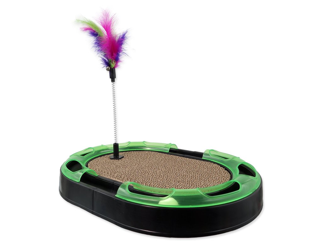 Drapak Magic Cat z torem kulkowym i sprężyną z piórami, czarny, 40x30x4,2 cm
