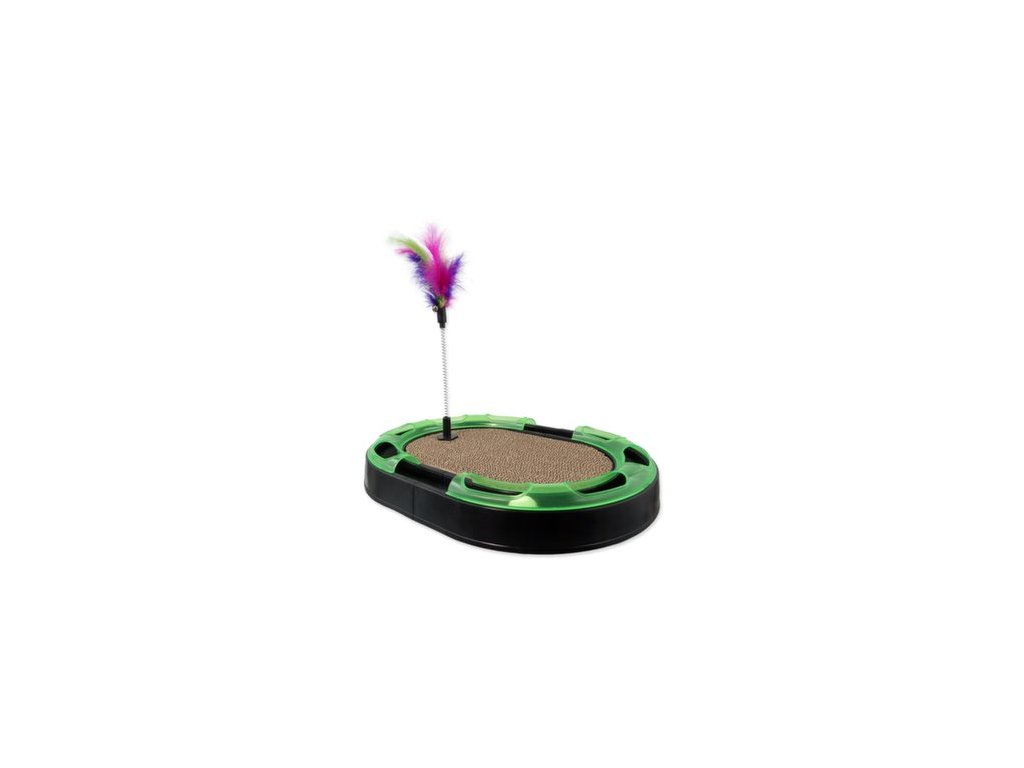 Interaktywny, zabawny drapak dla kotów z torem kulkowym i sprężyną z piórkami.