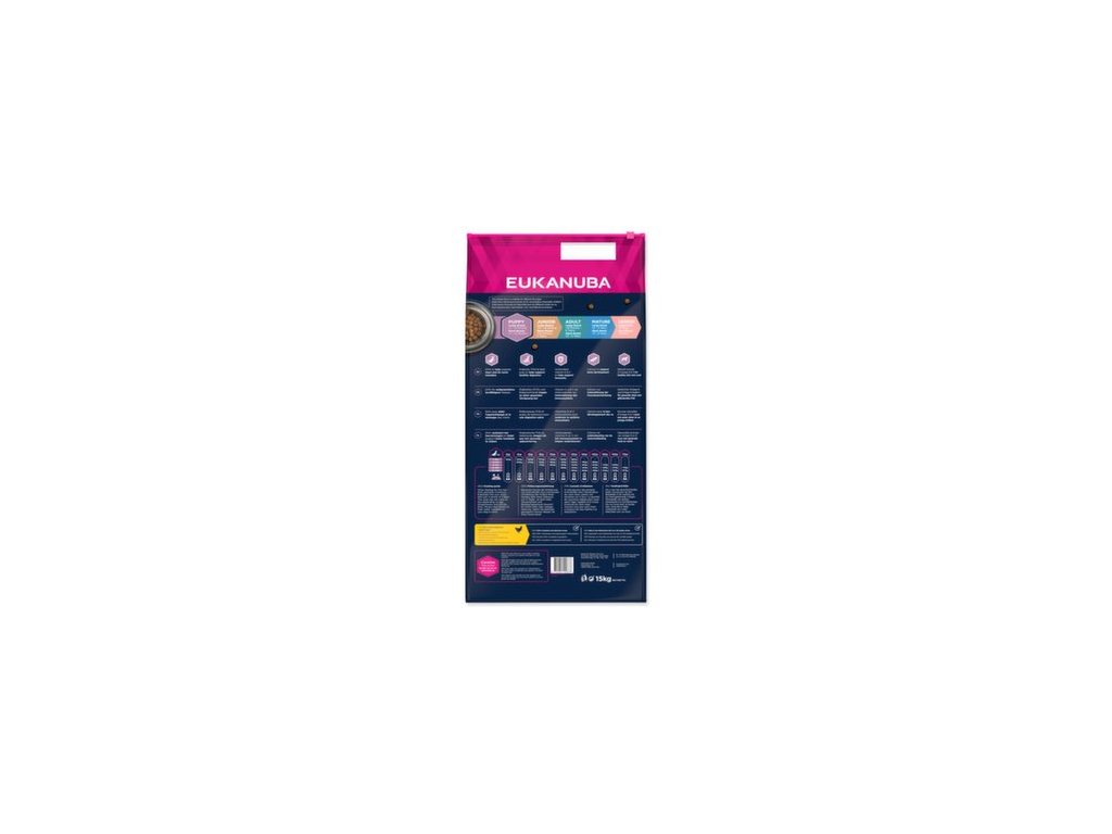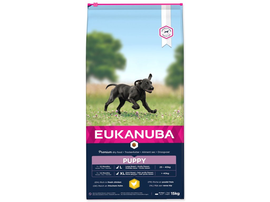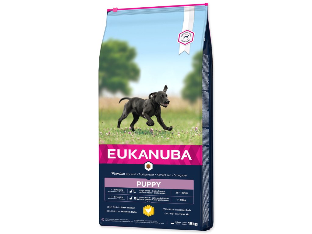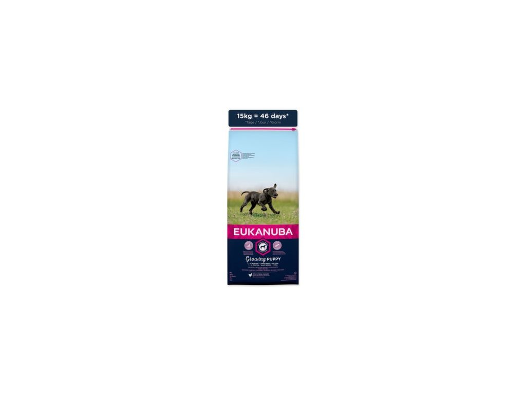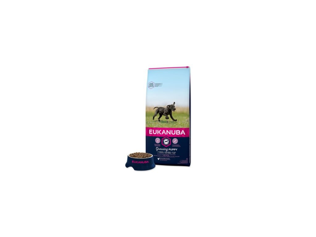 Nowa ulepszona formuła EUKANUBA, skupiona na konkretnym etapie życia - dla szczeniąt dużych ras w wieku od 3 do 14 miesięcy– zapewnia w 100% kompletne, dostosowane i zbilansowane odżywianie, które wspomaga wzrost i rozwój Twojego szczeniaka. Nasza wyjątkowa, specjalnie opracowana formuła dla szczeniąt dużych ras zawiera DHA, który pomaga szczeniętom uczyć się szybciej i łatwiej szkolić, mieszankę błonnika, prebiotycznych FOS i miąższu buraczanego, które wspomagają zdrowe trawienie, wapń dla zdrowego wzrostu kości, naturalne źródło kwasów tłuszczowych omega-6 i omega-3 dla zdrowej skóry i sierści, a także antyoksydacyjne witaminy E i C, które wspomagają układ odpornościowy. Nasze wyjątkowe granulki w kształcie sześciokątów z dodatkiem DentaDefense pomagają również utrzymać czyste i zdrowe zęby. Zaawansowane odżywianie dla szczeniąt dużych ras, mające na celu wspieranie optymalnej kondycji ciała i dobrego samopoczucia przez całe życie.