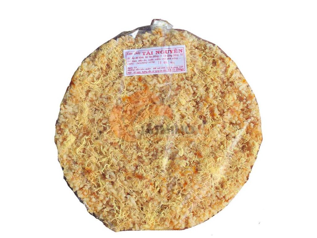 Składniki: Ryż, suszona wieprzowina, olej roślinny, chili, czosnek, cukier, sól. Ostrzeżenie: Produkt zawiera woreczek pochłaniający tlen, który nie jest bezpieczny do spożycia. Wartości odżywcze na 100g: Energia 2061kJ/491 kcal / Tłuszcz 18g w tym kwasy tłuszczowe nasycone 16g / Węglowodany 72g w tym cukry 9g / Białko 7,1g / Sól 2g. Przechowywanie: Przechowywać w suchym i ciemnym miejscu. Kraj pochodzenia: Wietnam.Parametry dodatkowe