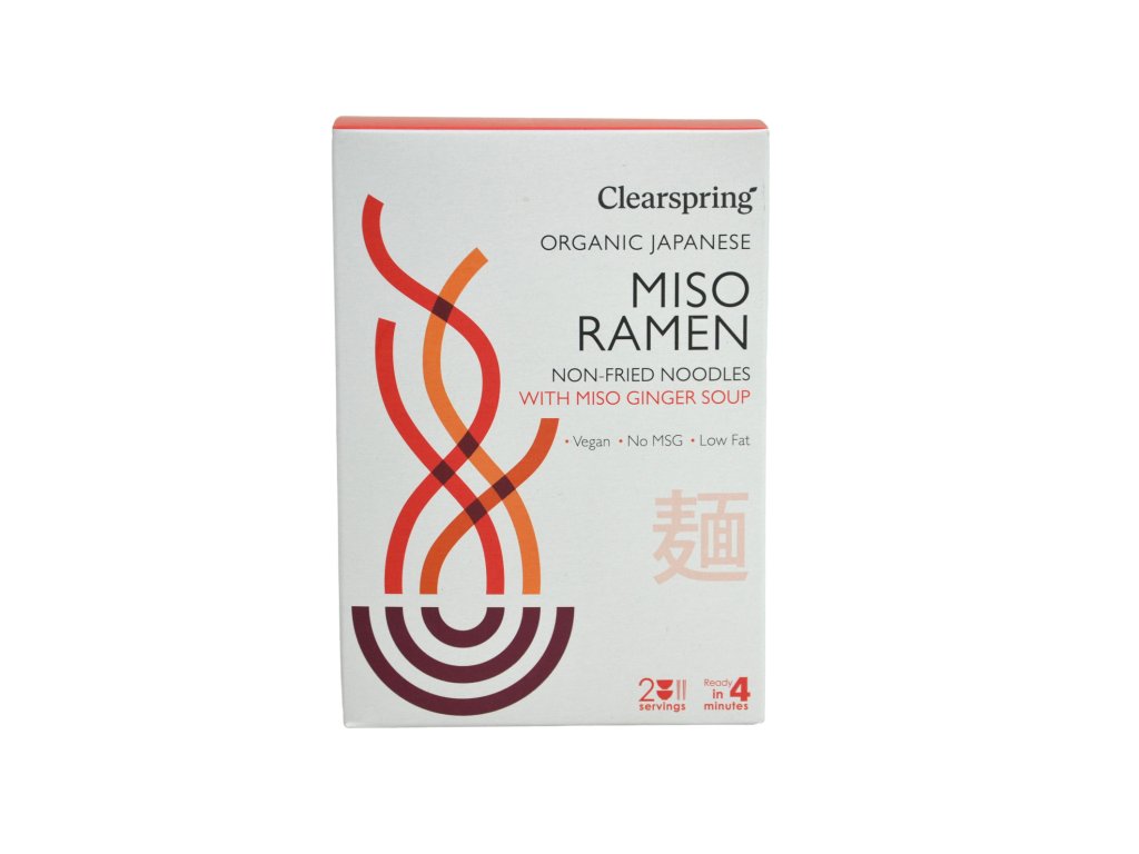 Dzięki Clearspring możesz łatwo i wygodnie delektować się autentycznym japońskim ramenem, gdy masz mało czasu, nie rezygnując ze smaku i jakości. Łączy w sobie najlepsze ekologiczne japońskie makarony pszenne ze smakiem miso i bogatą w umami zupą imbirową. Clearspring Organic Japanese Miso Ramen nie zawiera sztucznych aromatów, dodatków ani konserwantów, jest w 100% wegański i można go przygotować w zaledwie 4 minuty.Wartości odżywcze