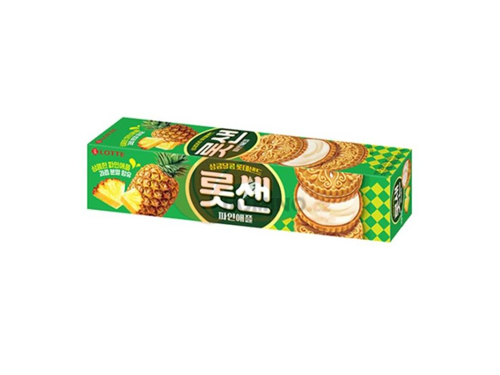 Składniki: mąka PSZENNA (PSZENICA), olej roślinny (SOJA), dekstroza jednowodna, cukier puder, tłuszcz częściowo uwodorniony (SOJA), cukier, tłuszcz palmowy (SOJA), płynne całe JAJA (JAJA), laktoza (MLEKO), pełne MLEKO w proszku, syrop fruktozowy, sól, regulator kwasowości, sztuczne aromaty (aromat ananasowy, wanilina), sok ananasowy w proszku, lecytyna (SOJA), kwas spożywczy: E330, regulator kwasowości: E296, ekstrakt palmowy. Wartości odżywcze na 100g: Energia 2192kJ/524kcal / Tłuszcz 26,6g w tym kwasy tłuszczowe nasycone 13g / Węglowodany 66,6g w tym cukry 34g / Sól 0,3g / Białko 4g. Przechowywanie: Przechowywać w suchym i chłodnym miejscu. Kraj pochodzenia: Korea Południowa.Parametry dodatkowe