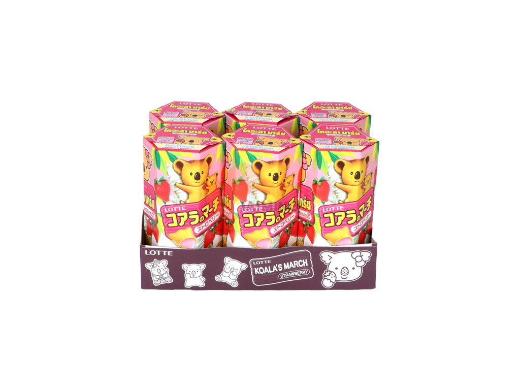 Składniki: krem truskawkowy (mleko, olej palmowy, olej rzepakowy, cukier), mleko w proszku, lecytyna, mąka pszenna, skrobia kukurydziana, cukier, substancja zagęszczająca: E170i, substancja spulchniająca: E503, E500, cukier, sól, barwniki E150d, E129, aromat: mleko, wanilia. Alergeny: mleko, soja, pszenica. Wartości odżywcze na 100g: Energia 516 kcal / Tłuszcz 26,6g w tym kwasy tłuszczowe nasycone 22,4g / Węglowodany 66g w tym cukry 44g / Białko 3,67g / Sól 225g. Przechowywanie: Przechowywać w suchym i ciemnym miejscu. Kraj pochodzenia: Tajlandia.Parametry dodatkowe