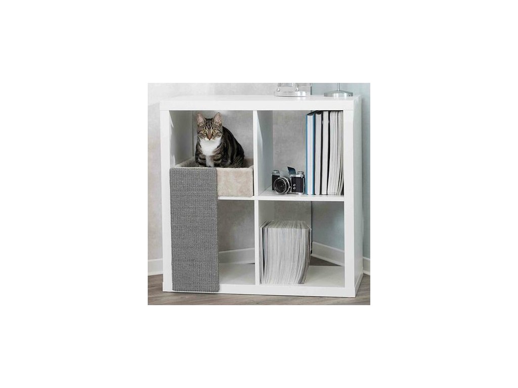 Łóżko kwadratowe z drapakiem, jasnoszare, ustawione na półce