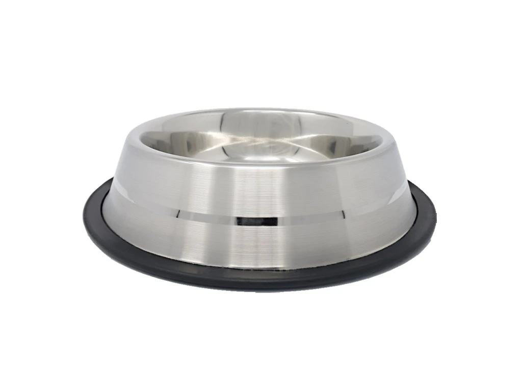 Miska ze stali nierdzewnej, stabilna, polerowana - SILIKON 0,2 lMiska ze stali nierdzewnej, wyposażona w pierścień silikonowy, jest stabilniejsza i nie ślizga się na podłodze. Zastosowany silikon ma dłuższą żywotność niż na przykład guma. Na zewnątrz miski szlifowane i błyszczące powierzchnie naprzemiennie układają się w kształty, co nadaje jej bardziej atrakcyjny wygląd.