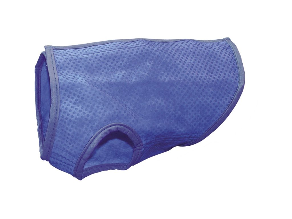 Kamizelka chłodząca Nobby dla dużych ras psów, wspomagająca termoregulację w czasie wzmożonej aktywności. Kamizelka chłodzi psa poprzez odparowywanie wody i może być używana wielokrotnie. Utrzymuje stałą temperaturę ciała w trakcie uprawiania sportu, treningów i zawodów. Nadaje się również dla starszych psów. Zapięcie na rzep. Wykonane z bardzo chłonnego materiału PVA (alkohol poliwinylowy). W zestawie znajduje się woreczek z możliwością ponownego zamknięcia, umożliwiający ponowne przechowywanie kamizelki. Bardzo lekka kamizelka. Stosowanie: Zanurz kamizelkę w zimnej wodzie, delikatnie wstrząśnij i załóż psu. Konserwacja: można prać w temperaturze do 40°C, pranie ręczne. Ostrzeżenie: Przed użyciem dokładnie wypłukać. Należy pamiętać, że nawet kamizelka chłodząca nie ochroni psa przed przegrzaniem podczas aktywności w silnym słońcu. Nie pozostawiaj psa bez opieki i zdejmij kamizelkę, jeśli zauważysz jakiekolwiek objawy przegrzania. Zawsze utrzymuje kamizelkę lekko wilgotną, nawet przed schowaniem jej do dołączonego pokrowca. Kolor: niebieski Rozmiar L: obwód klatki piersiowej 65-70 cm długość pleców 37 cmParametry dodatkowe