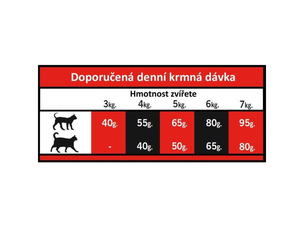 Dodatki w 1 kg: Witamina A 20 000 MJ / mg, Witamina D3 1600 MJ / mg. Witamina E 750 mg, witamina C 70 mg, L-tauryna 1000 mg, L-carnityna 75 mg, DL-Metionina 800 mg, żelazo (monohydrat siarczanu żelaza) 10 Mg, manganetes. cynk (tlenek cynku) 155 mg, selen (selenit sodu) 0,27 mg, wyciągi cytrusowe bogate w bioflawonoidy 800 mg, ekstrakt z jukca 170 mg.