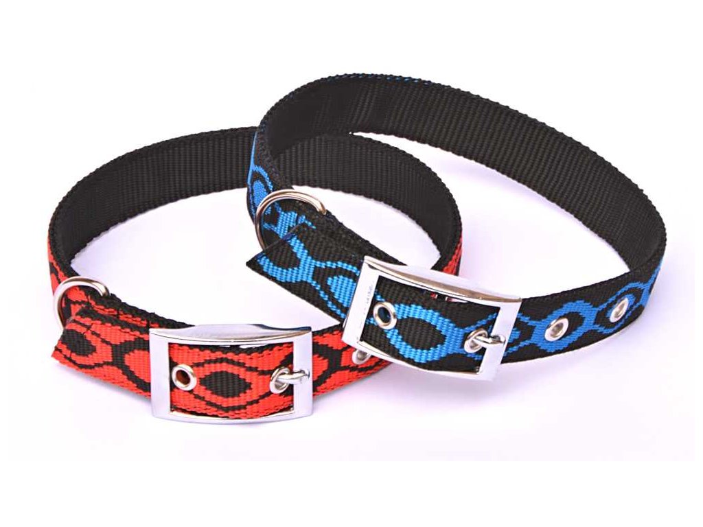 Oczko do mocowania smyczy. Obwód kołnierza jest regulowany. Zapięcie na metalową klamrę.