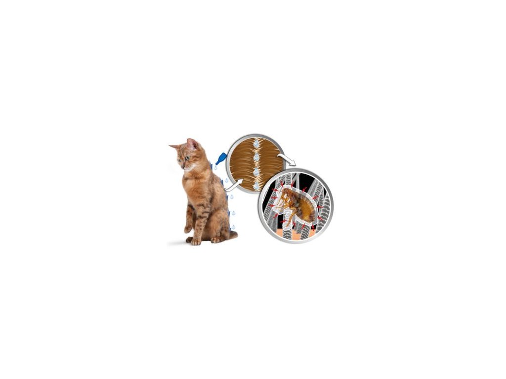 Sposób użycia: Zawartość jednej pipetki nanieść bezpośrednio na skórę kota wzdłuż kręgosłupa od szyi do ogona. Stosować co cztery tygodnie lub po kąpieli.