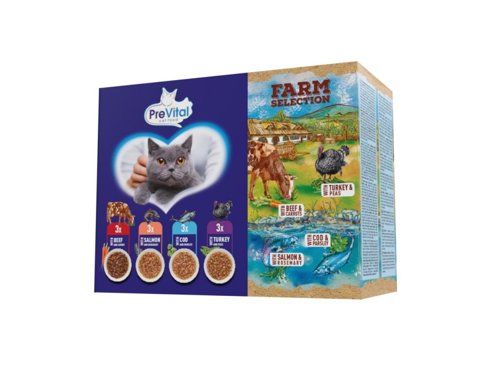 Prevital Farm Selection dla kotów, mieszanka mięsno-rybna w sosie, torebka 85 g (12 sztuk)