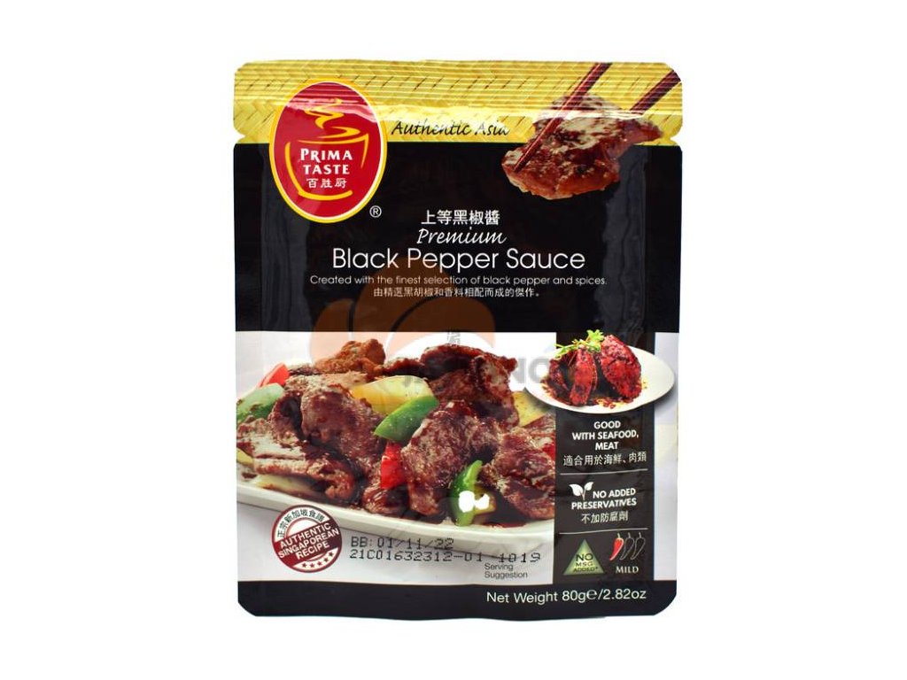 Składniki: Cukier, olej roślinny (oleina palmowa), biały pieprz, sos SOJOWY [ekstrakt z nasion SOI, PSZENICA, sól, woda, cukier, barwnik (karmel amoniakalny)], woda, sos grzybowy [woda, cukier, sól, proszek grzybowy, skrobia modyfikowana (kukurydza woskowa, tapioka) (acetylowany adypinian diskrobiowy, hydroksypropylofosforan diskrobiowy), mąka PSZENNA, ekstrakt drożdżowy, barwnik: E150, zagęszczacz: E415, regulator kwasowości: E270, wzmacniacz smaku: E631], szalotka, czosnek, sól, smażony czosnek, imbir, mąka PSZENNA, proszek solny, czarny pieprz (1%), pączek imbiru, przyprawy, liście limonki kaffir. Alergie: Wyprodukowano w zakładzie, w którym przetwarzane są również orzeszki ziemne, sezam, skorupiaki, orzechy drzewne, seler, mięczaki, mleko i produkty jajeczne. Wartości odżywcze na 100g: Wartość energetyczna 1375kJ / 328kcal / Tłuszcz 13,5g w tym kwasy tłuszczowe nasycone 3,9g / Węglowodany 45,4g w tym cukry 28,6g / Sól 6,5g / Białko 4,6g. Przechowywanie: Przechowywać w suchym i ciemnym miejscu. Kraj pochodzenia: Singapur.Parametry dodatkowe