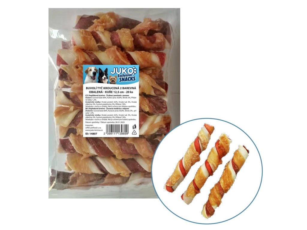 Skręcone bawole paluszki 2 kolory zawinięte w kurczaka JUKO Snacks 12,5 cm (20 szt.)
