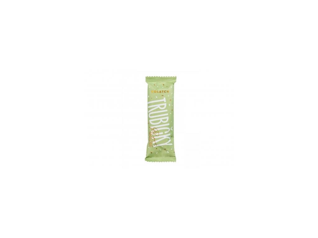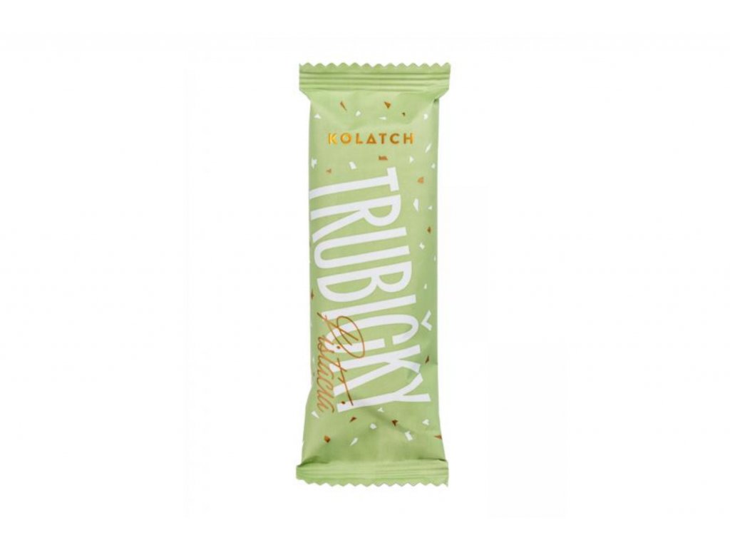 Rurki wypełnione nadzieniem pistacjowym (62%) w białej czekoladzie z pistacjami Przechowywać w temperaturze od 15°C do 25°C.Wartości odżywcze