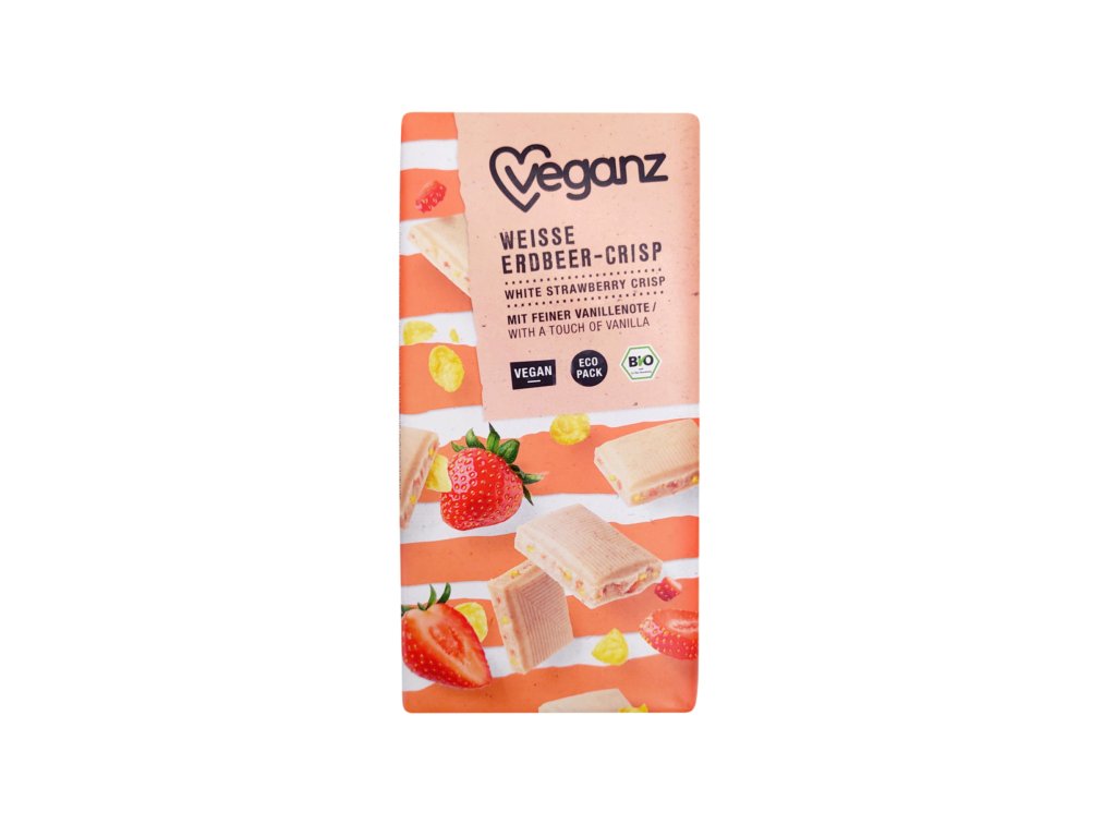 Wegańska biała czekolada z truskawkami i chrupkami 80 g BIO VEGANZ