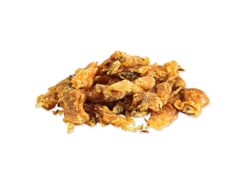Oblíbené pamlsky rybičky obalené kuřetem.