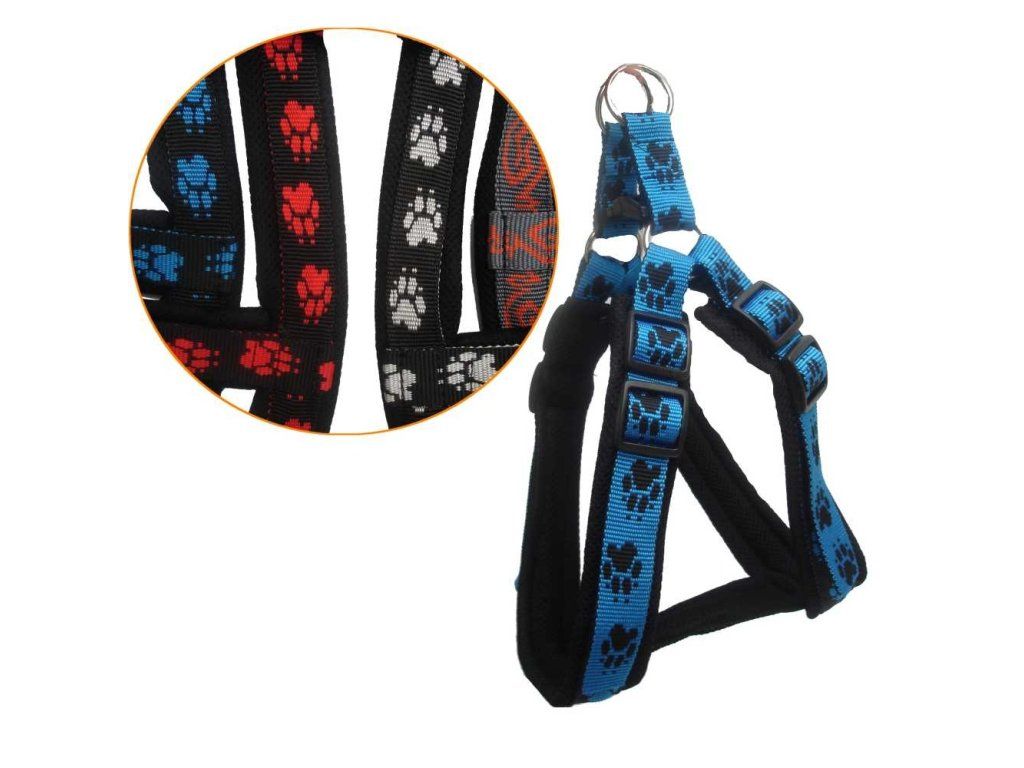 Postroj motýl SCelopolstrovaný postroj pro psy s obvodem hrudníku 60-70cm. Postroj lze upravit na přesnou velikost. Různé dekory.