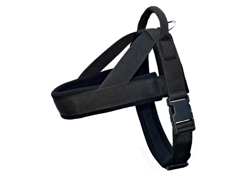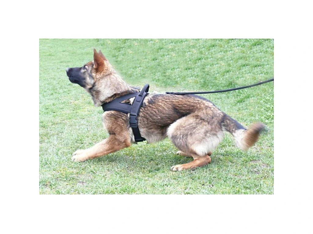 je vyroben z polypropylenového popruhu šíře 40mm, celopodšitý molitanem s mikroplyší. Postroj se velice snadno navléká na psa. Jeho zapínaní je řešené na jednu velkou, 40mm, polyamidovou přezku, tzv. trojzubec. Vzhledem k použitým materiálům je i jeho údržba velice snadná. Lze prát v automatické pračce. Jeho využití je velice všestranné, hlavně tam, kde má pes táhnout a nebyl škrcený klasickým obojkem. Např. při nácviku obran, kde lze využít úchytu k přidržování a bezpečnému ovládání psa.