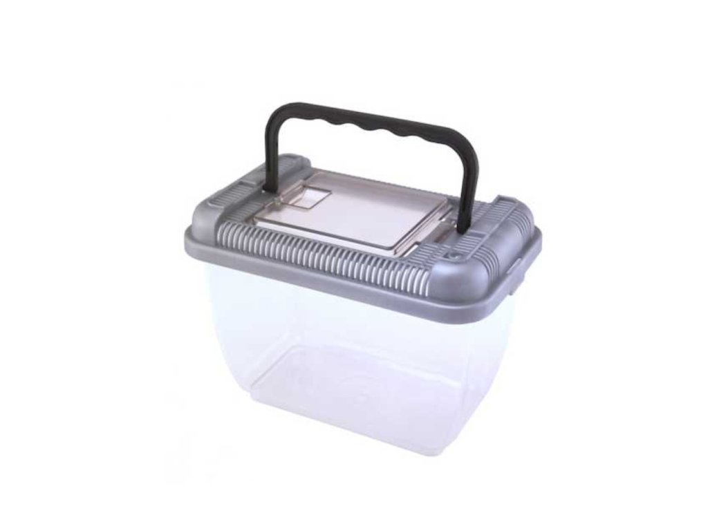 Lehký přenosný box pro terarijní zvířata s větracími otvory ve vrchní části.