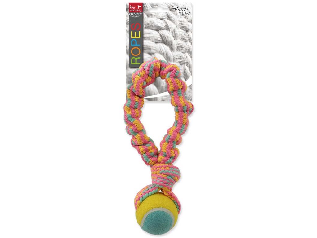 Hračka Dog Fantasy přethovadlo s tenisákem barevný vzor 1, 28cm