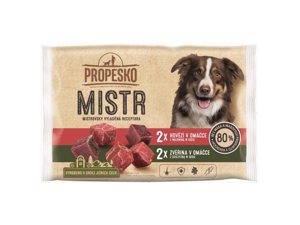 PROPESKO Dog Mistr hovězí, zvěřina v omáčce, kapsa 85 g (4 pack)
