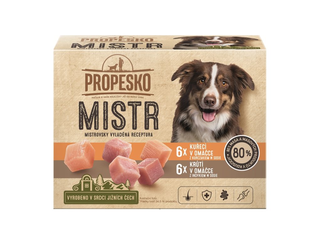 PROPESKO Dog Mistr kuře, krůta v omáčce, kapsa 85 g (12 pack)