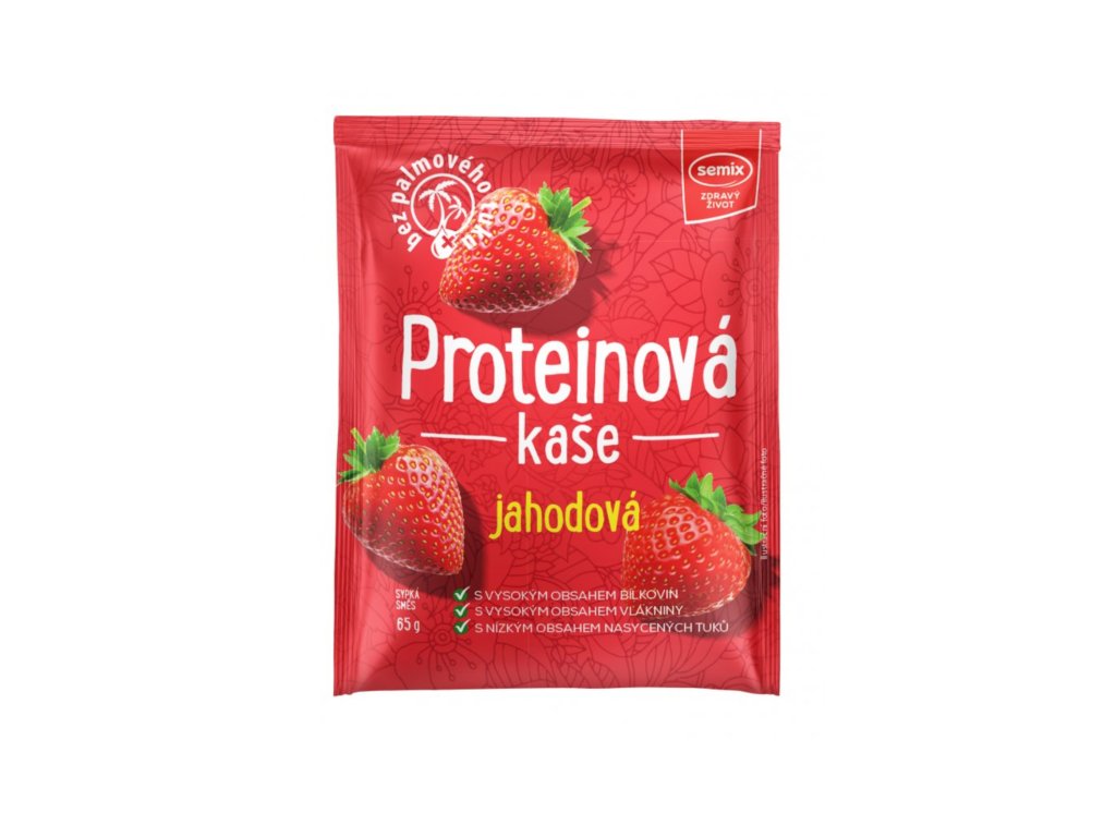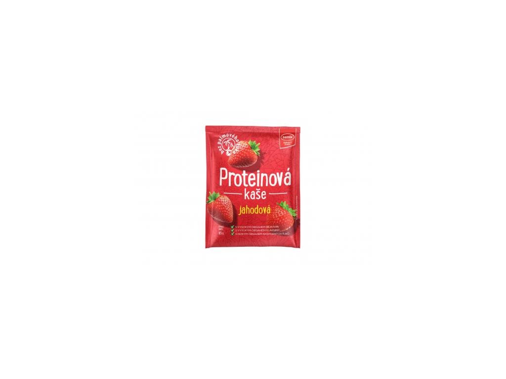 Proteinová kaše jahodová obsahuje 18 g bílkovin na jednu porci z kvalitního syrovátkového proteinového koncentrátu, dále má vysoký obsah vlákniny a nízký obsah nasycených tuků. Bez palmového tuku. Návod k použití: Obsah sáčku vsypte do misky či hrníčku. Zalijte 60 až 70 ml horké vody nebo mléka a dobře promíchejte. Nechte 3 až 5 minut odstát a ihned konzumujte.Nutriční hodnoty