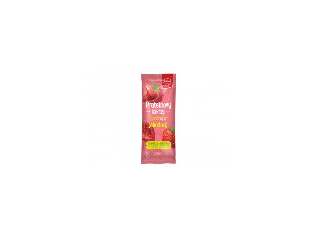 Proteinový koktejl je osvěžující nápoj s vysokým obsahem bílkovin, který pomůže vašim svalům regenerovat. Ideální je tedy konzumovat jej během nebo po sportovním výkonu. Je nicméně vhodný i ke konzumaci mimo sport, jako doplnění bílkovin. Sáček obsahuje 17 g bílkovin = kvalitního syrovátkového proteinového koncentrátu. Má nízký obsah nasycených mastných kyselin. Koktejl obsahuje 5 % sušených jahod. Návod k použití: Obsah sáčku zalijte 300 ml vody nebo mléka, důkladně promíchejte nebo rozmixujte.Nutriční hodnoty