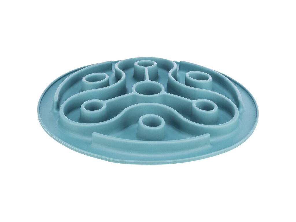 Protihltací talíř Slow feeding TRIANGL, k pomalému krmení, TPE, o 28 cm, modrá