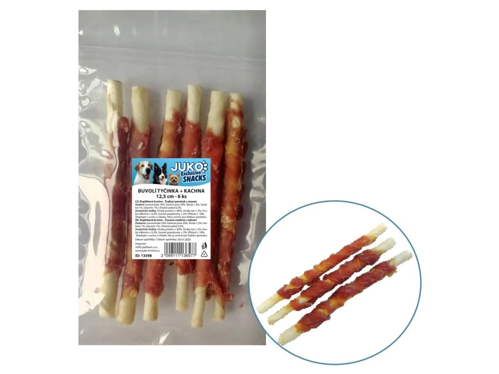 Băț de bivol învelit în carne de rață Gustări JUKO 12,5 cm (6 buc)