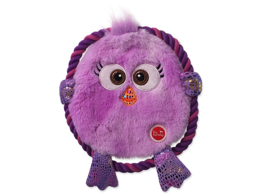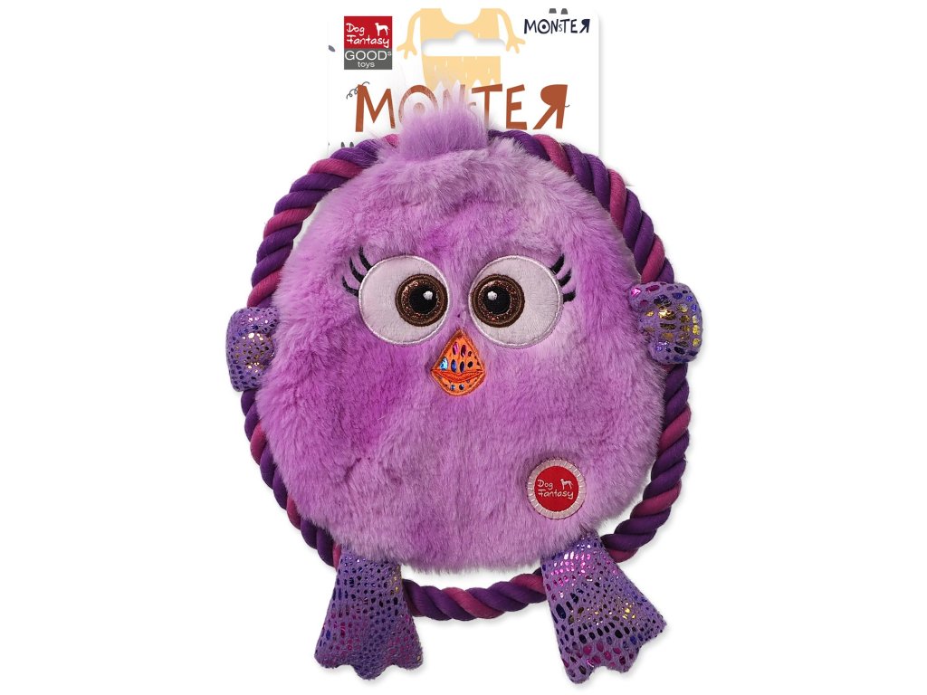 Câine Fantasy Monsters jucărie foșnet pui cu funie mov 18cm