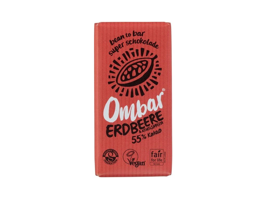 Ciocolata Ombar Premium cu căpșuni și lapte de nucă de cocos este o ciocolată care se topește fin, delicios cremoasă, făcută din cacao brută de înaltă calitate, provenită din ferme sustenabile mici din Ecuador. Ombar oferă o gamă diversă de arome, de la nucă de cocos delicată la cacao puternică, cu o notă de arome fructate de afine + acai. Toate ingredientele sunt certificate de Federația Alimentară Ecologică.